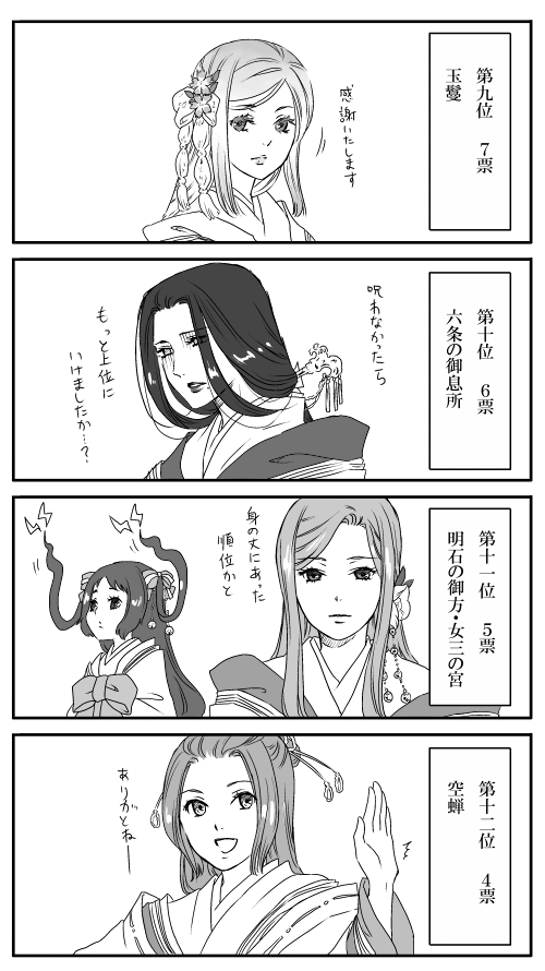 1位の葵の上とは30票以上開きがありますが、やはり幼妻パワーは凄まじいですね