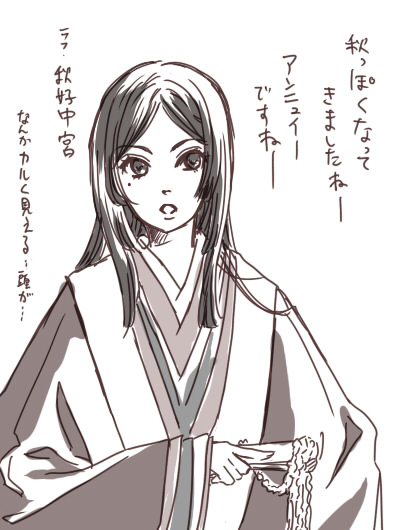 とりあえず秋なので、秋好中宮を描いてみました。梅壺の女御です。